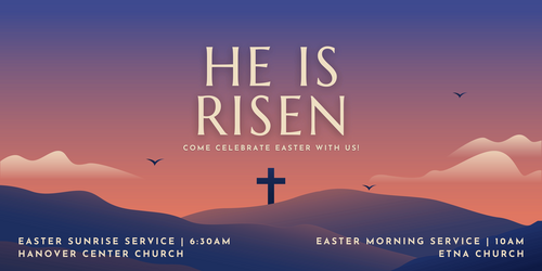 Easter Morning Breakfast - request for muffins, etc. Our schedule for Easter Sunday morning includes breakfast after Sunrise service on March 31 (ca. 7 am). Breakfast will be in Trumbull Hall at the Etna church. If you'd like to assist with the morning's menu, we could still use your donation of some muffins, pastries, or breakfast breads. Norma Pelton asks anyone who wishes to provide some of these treats to please leave them in the kitchen at Trumbull Hall in Etna at any time on Saturday March 30. Thank you very much for your consideration and for your assistance!