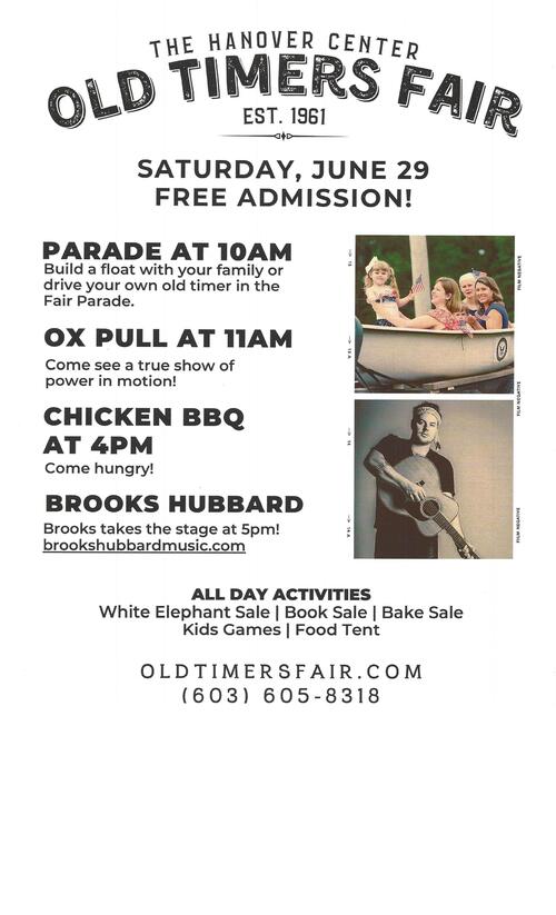 Hanover Center Old Timers’ Fair - June 29! The full fair is back on Saturday, June 29. For more information, visit https://www.oldtimersfair.com/. If you'd like copies of the poster shown below to post in your favorite (and appropriate) community haunts, just ask Pastor Chris!