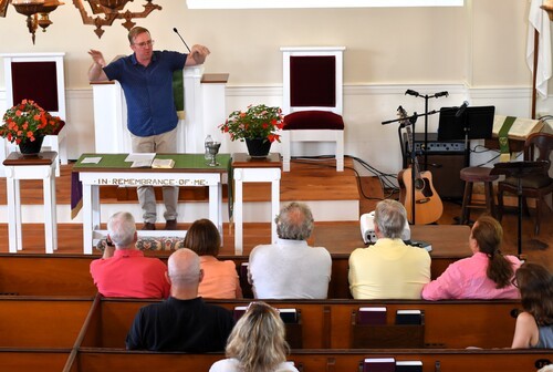 Under the tent on the Etna Baptist Church lawn