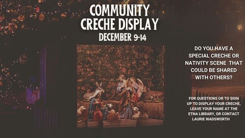 Note: We are especially looking for several folks to sign up to to be “monitors” while the sanctuary will be open for the community/public to come in to view the crèches. Contact Laurie Wadsworth for more informatioon and to sign up!