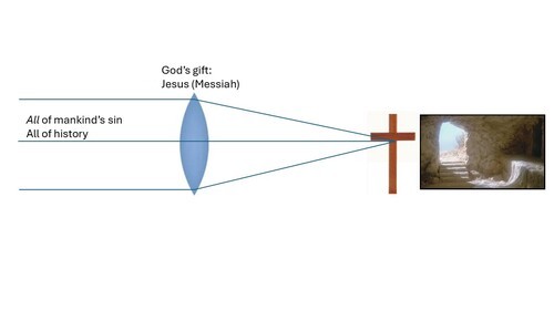 Jesus lives, gathers disciples, travels, preaches. He perform miracles, He illuminates the Scriptures, He convicts the faithless and the hypocrites, He raises the dead. His earthly life and ministry focuses everything on a singular point. Everything. All of mankind's rebellion, our sin, the whole of what we call history – past, present, and yet to come – focuses on one point: the cross. And, immediately adjacent (in the great scheme of things) to that cross and the death of the Messiah, an empty tomb. A perfect sacrificial Lamb, sacrificed to to pay for our sin (tetelestai). And raised again to everlasting life on Easter morning.